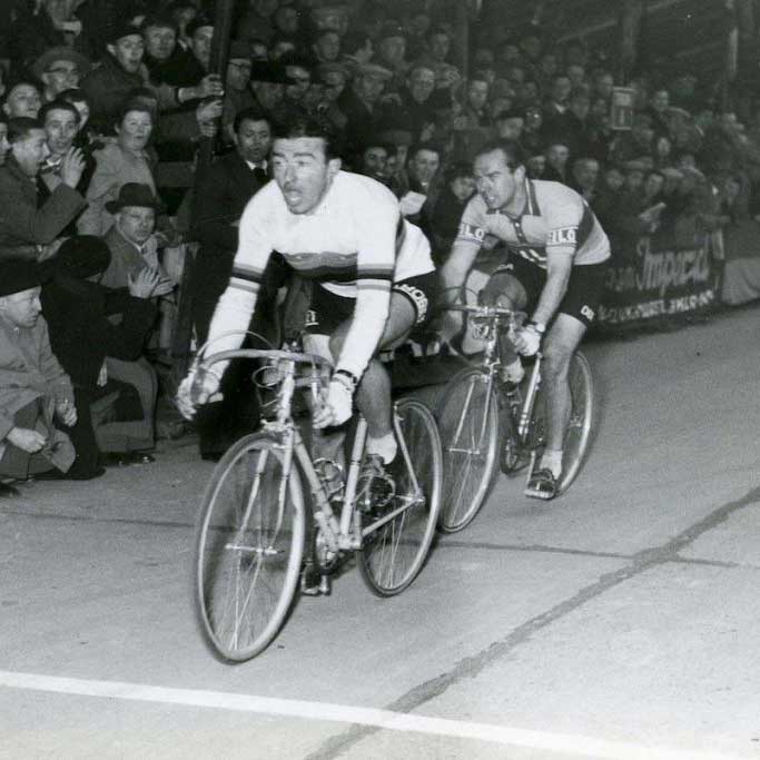 Der Bretone trat die Nachfolge seines Landsmanns Jean Forestier an und triumphierte im Frühjahr 1956 in der „Hölle des Nordens“. Mit seiner unglaublichen Schnelligkeit sprintete er den Belgier Alfred De Bruyne und … Jean Forestier hinter sich. Mit diesem Sieg in Roubaix schrieb Bobet Legendenstatus.