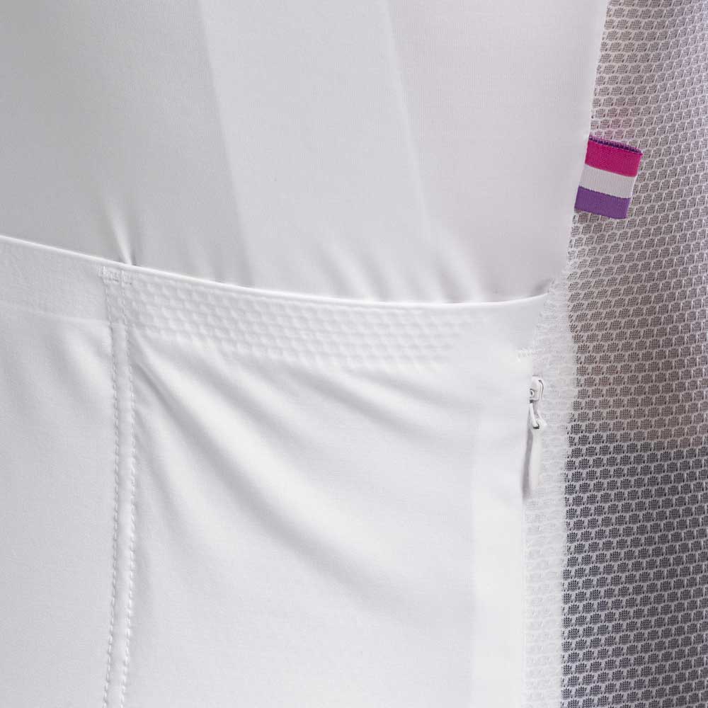Die Verarbeitungsqualität entspricht dem Ruf von Manufacture Mercier: Die einzelnen Teile sind mit Flachnähten verbunden, und der YKK-Reißverschluss ermöglicht es, das Trikot von oben bis unten zu öffnen. Das gestickte Logo auf der Vorderseite ist unser Markenzeichen und ein Beweis für die Sorgfalt, mit der wir die Qualität unserer Produkte sicherstellen.