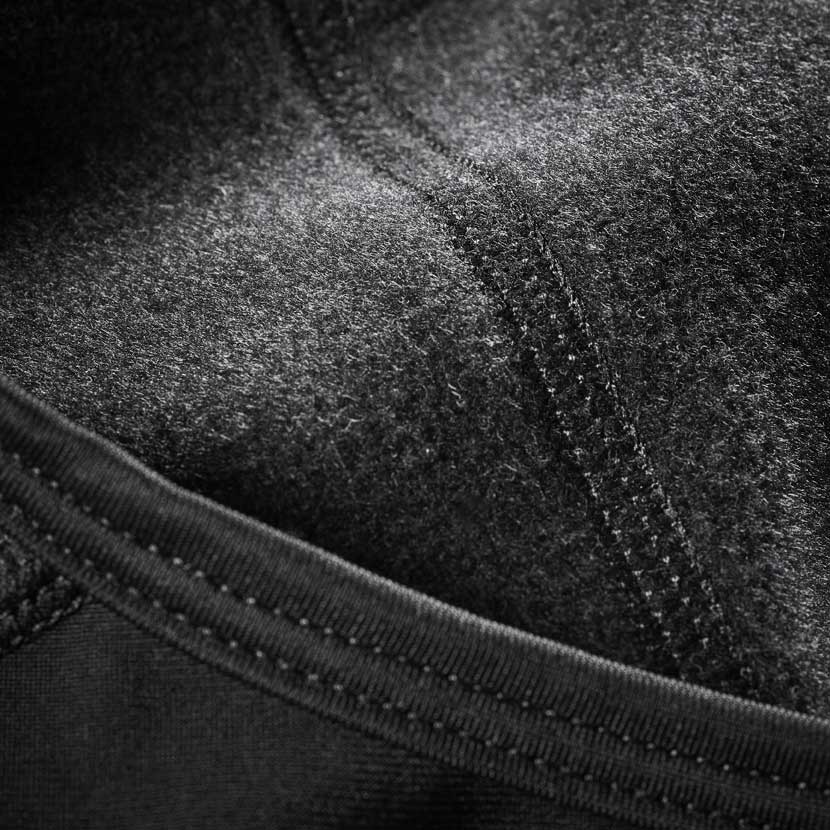 Am Sattel sorgt ein spezieller Stoffeinsatz für Abriebfestigkeit in diesem wichtigen Bereich. Für das Sitzpolster haben wir das komfortabelste Wildleder ausgewählt. Es wird in Italien gefertigt, ist dreifach verdichtet und absorbiert Vibrationen der Straße optimal, um Sie während der Fahrt bestmöglich zu unterstützen. Dasselbe Polster verwenden wir auch bei unseren Émile-Radhosen, die unsere Kunden besonders schätzen.