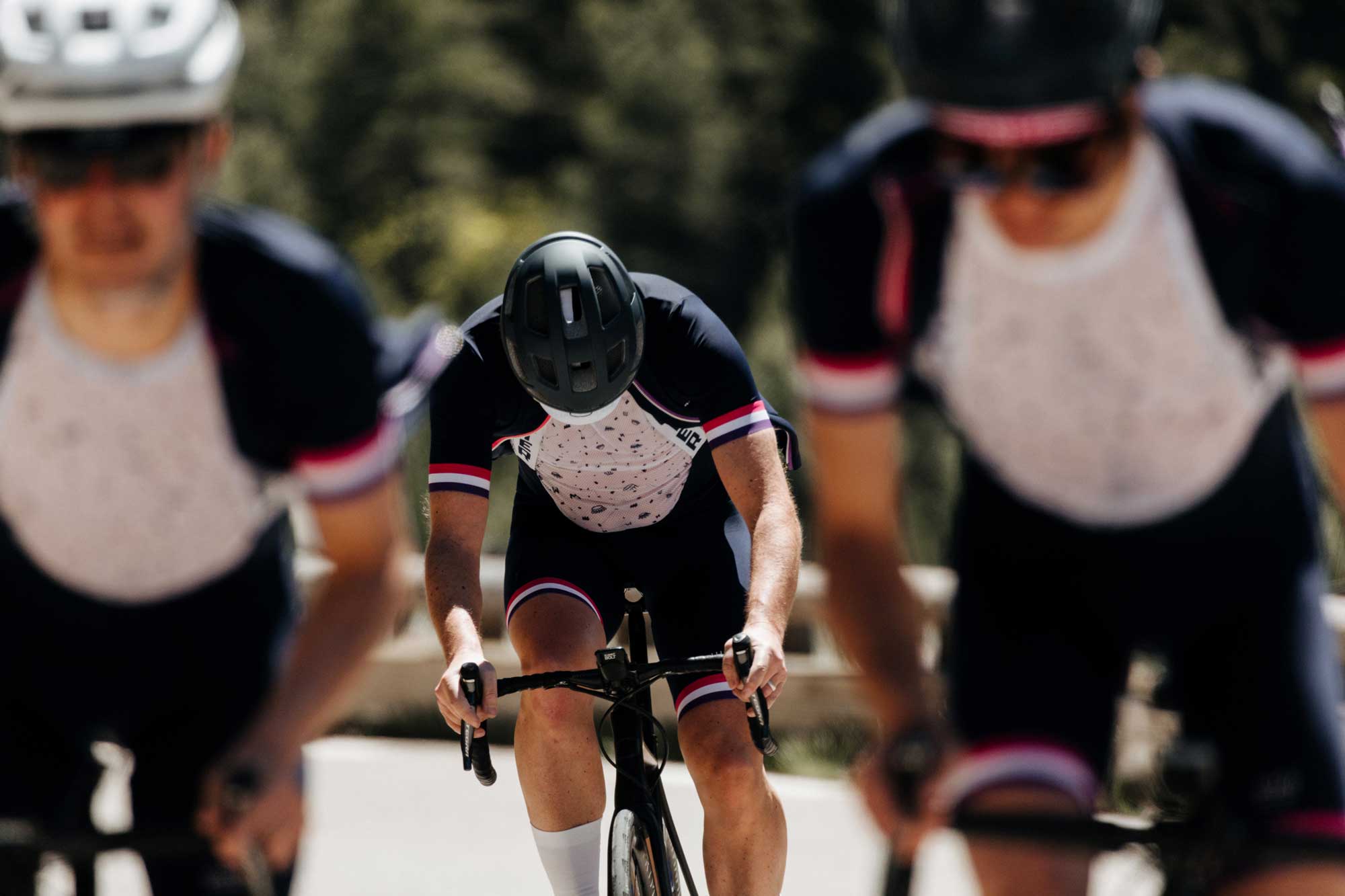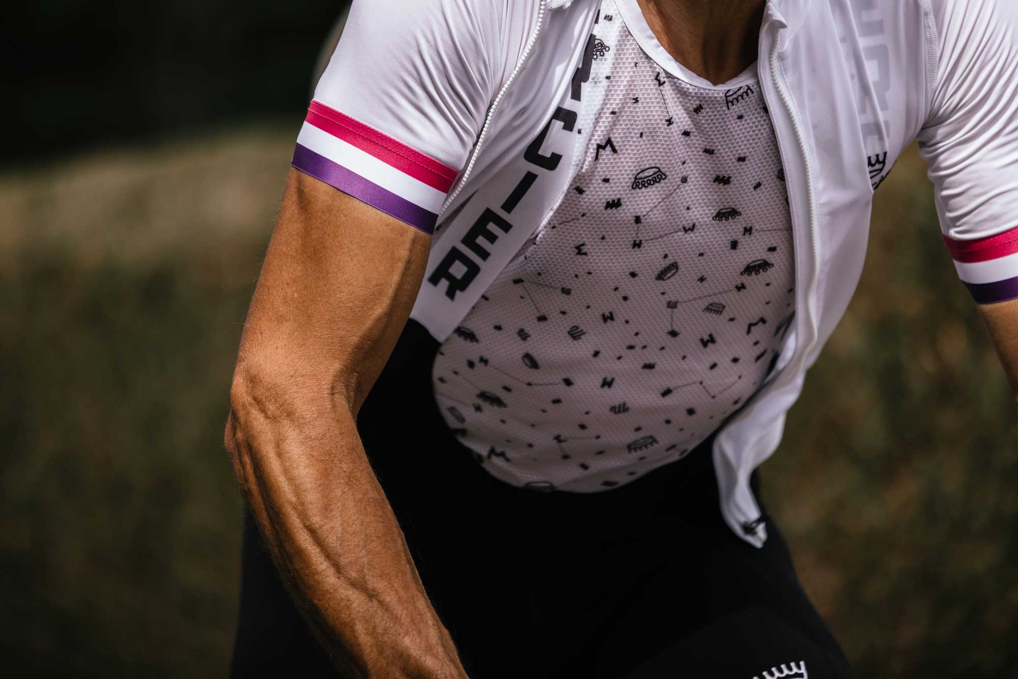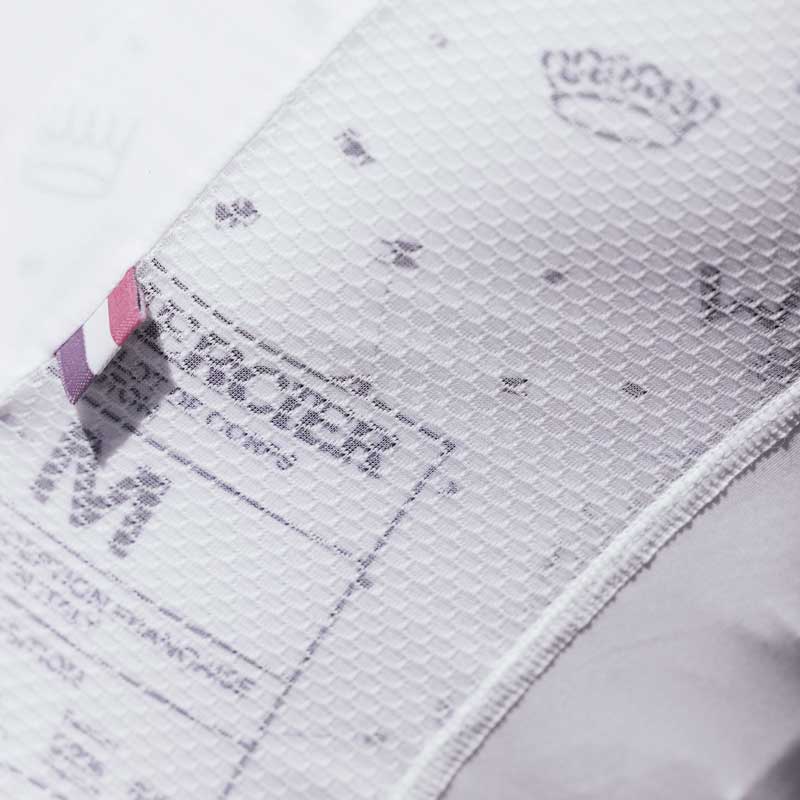 Die Seiteneinsätze sind großzügig mit Elastanfasern verstärkt, um die Basisschicht in jeder Position optimal zu stützen. Ein gutes Peloton muss kompakt sein! Und um Reibung zu vermeiden, ist die Basisschicht mit Flachnähten verarbeitet.