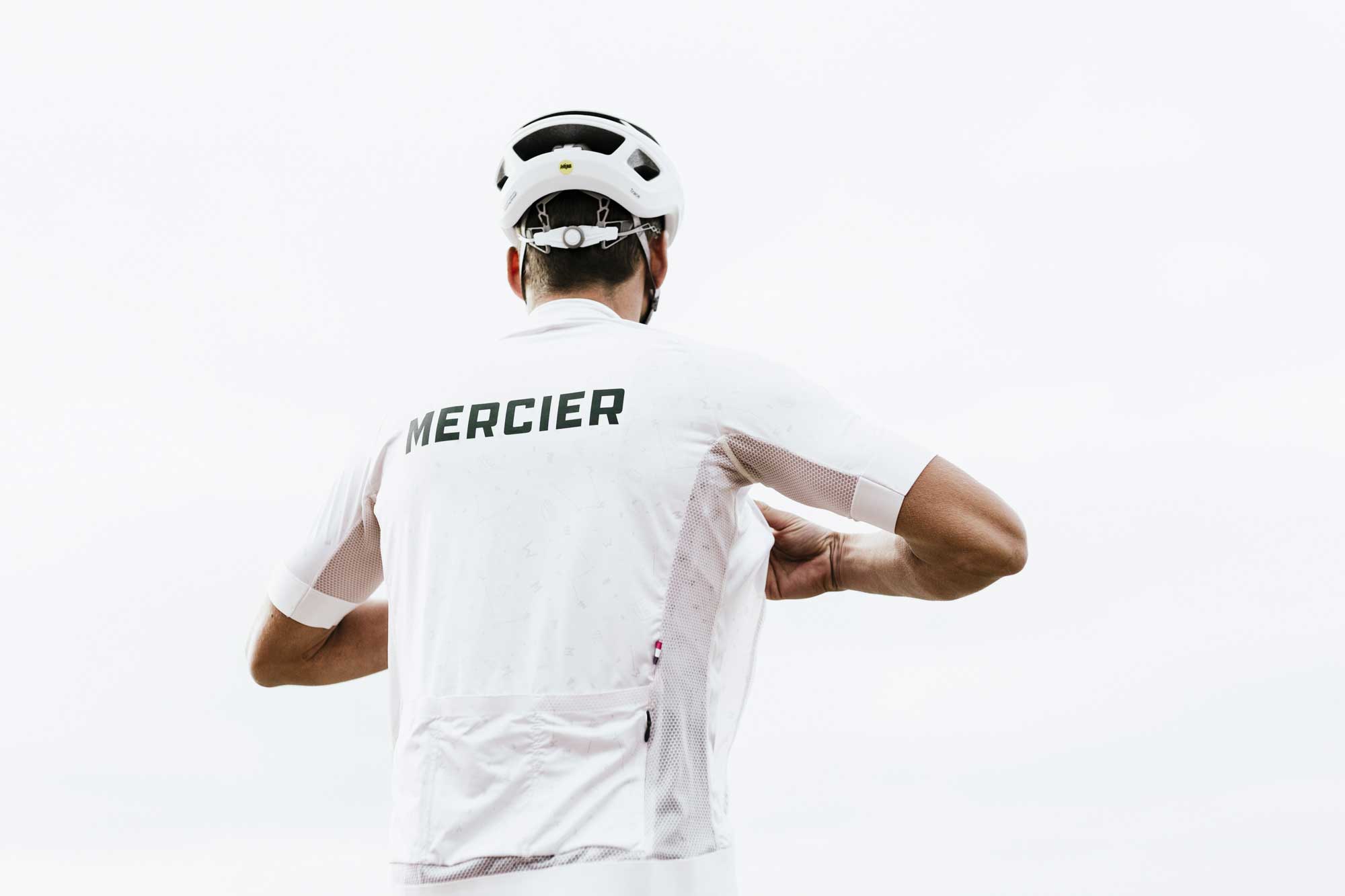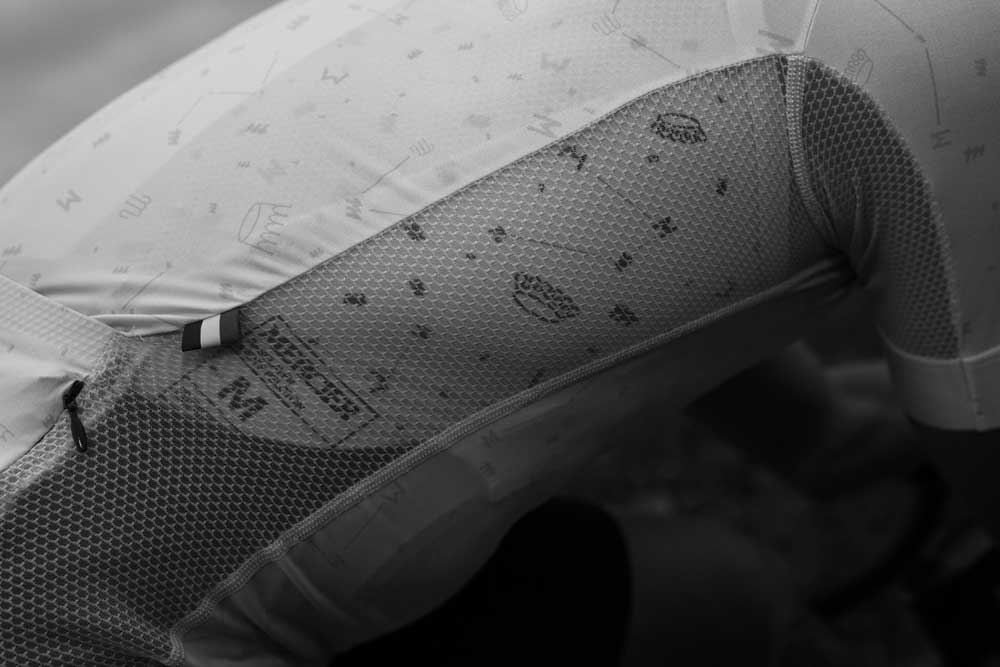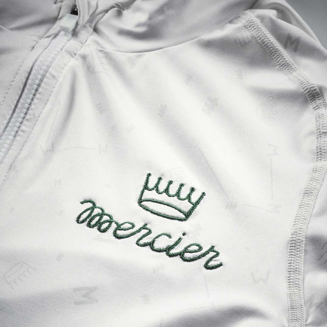 Zur Feier des Comebacks der Marke Mercier zeigt diese Sonderedition dezent alle im Laufe der Jahrzehnte verwendeten Markenlogos und erzeugt so ein Muster, das sich über das gesamte Trikot wiederholt.