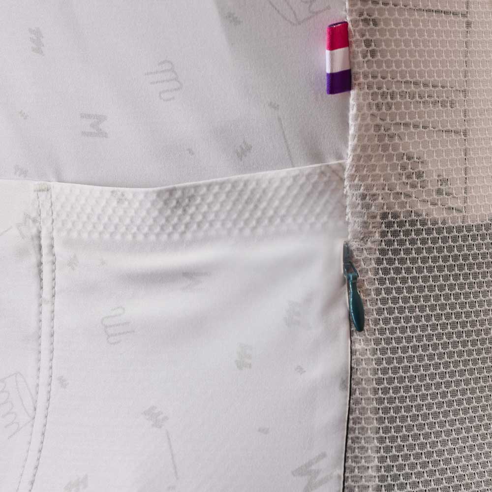 Die Verarbeitungsqualität entspricht dem Ruf von Manufacture Mercier: Die einzelnen Teile sind mit Flachnähten verbunden, und der YKK-Reißverschluss ermöglicht es, das Trikot von oben bis unten zu öffnen. Das gestickte Logo auf der Vorderseite ist unser Markenzeichen und ein Beweis für die Sorgfalt, mit der wir die Qualität unserer Produkte sicherstellen.
