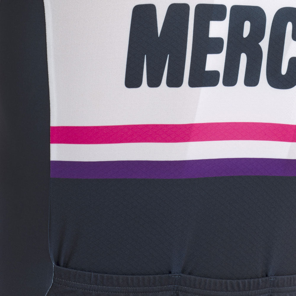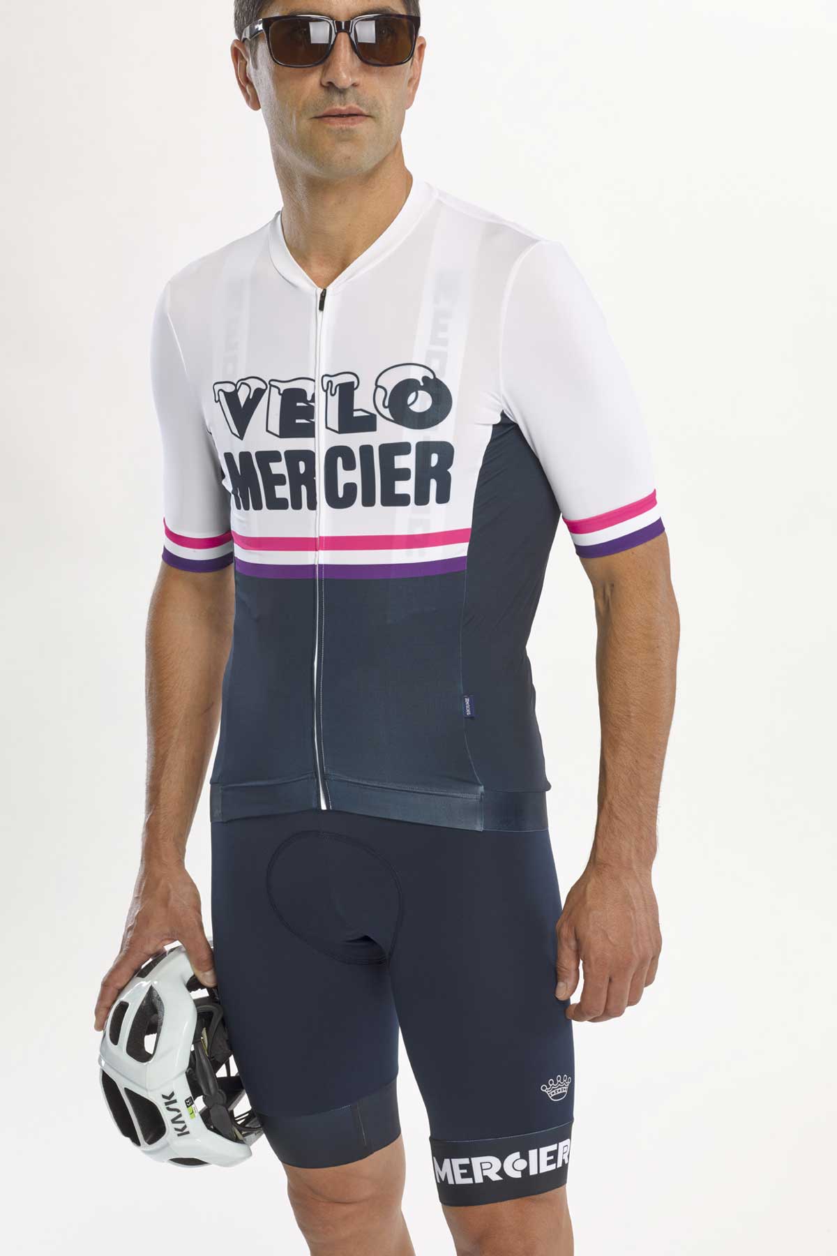 Mercier looks into its prolific legacy as a sponsoring brand at the highest level of professional cycling competition. The Velo Ed. Jersey pays tribute to the iconic Miko-Mercier Jersey worn by all the members of Mercier professional team between 1977 and 1981. Miko was an ice-cream brand very popular in France back in the days.