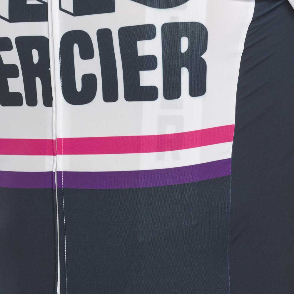 As always with Mercier, you will find an unparalleled level of finish: on the front, we have placed our signature label, stitched with the Mercier logo, and printed logos. On the back of the jersey, the brand's historic colors are displayed across the entire width of the back. At the collar, a tricolor fabric band allows Annecy to be hung. p>