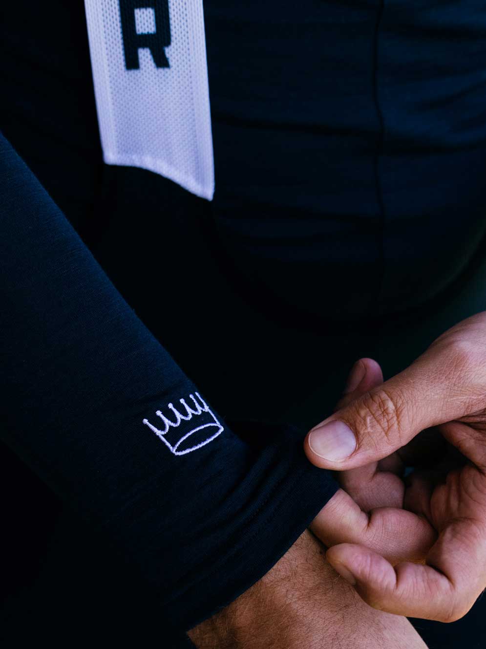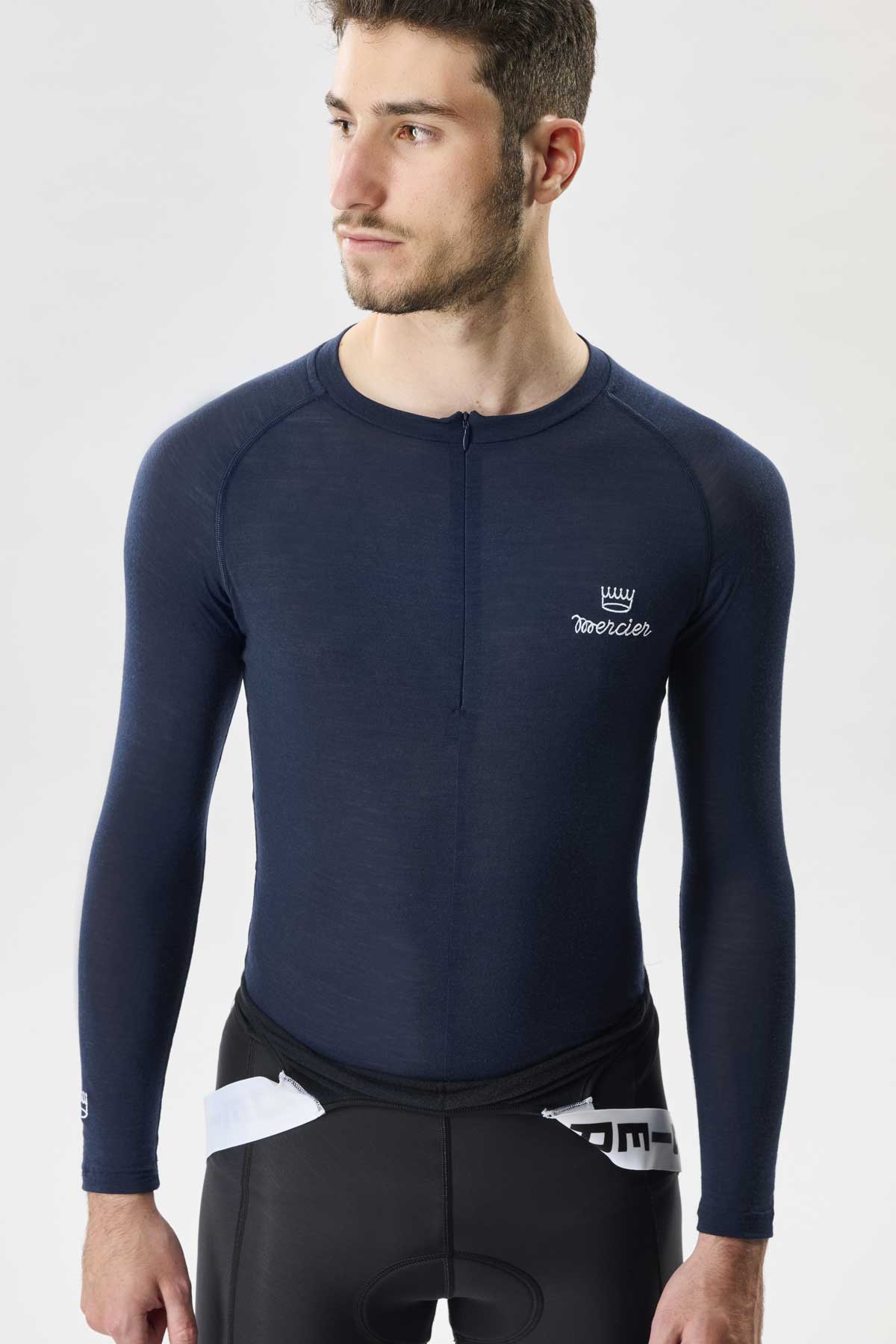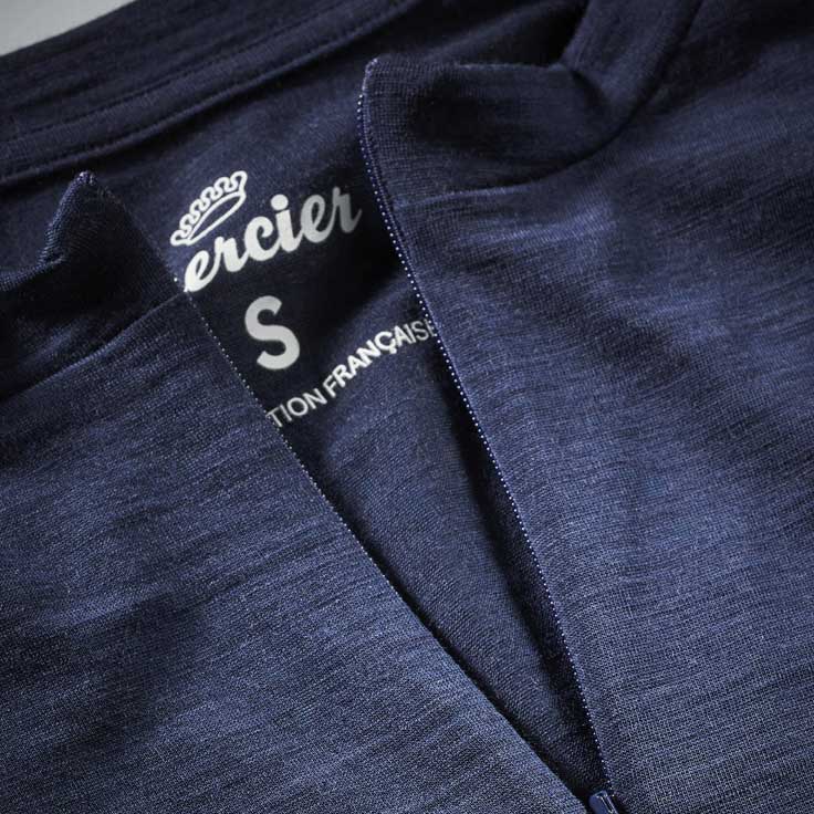 A nod to the garments worn by riders in the 60s, a zip allows you to open the base layer one-third of the way for adjustable ventilation. The Mercier logo is embroidered on the chest, and a crown placed on the sleeve reflects Mercier’s commitment to offering products of exceptional quality. Indeed, Gruppetto is handmade in Italy by a family-run company that has all the expertise required to work with this noble material: merino wool.
