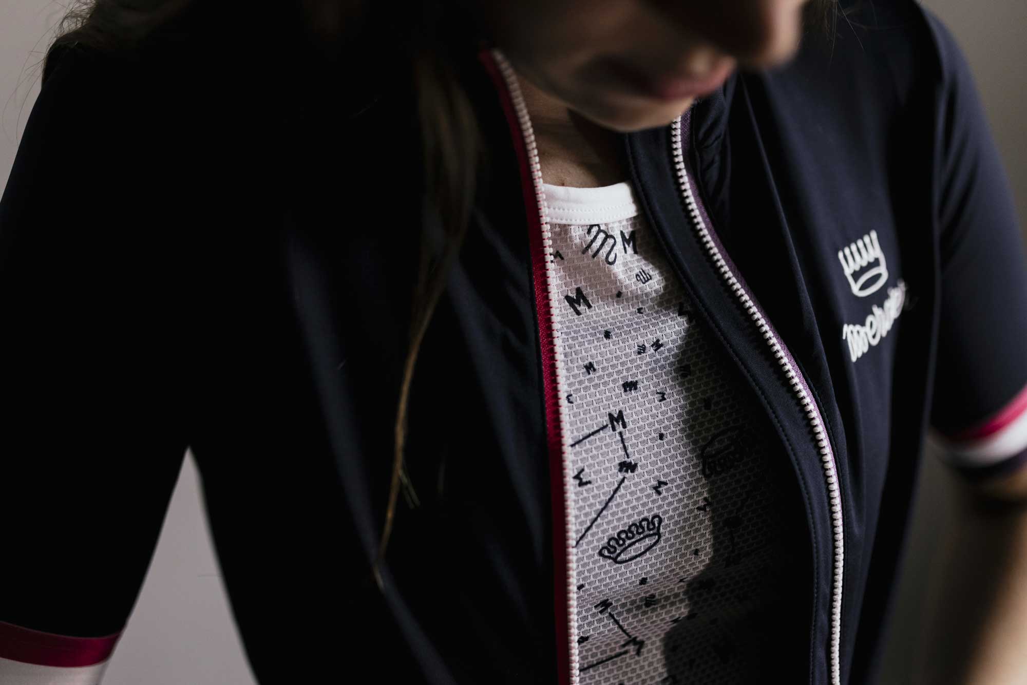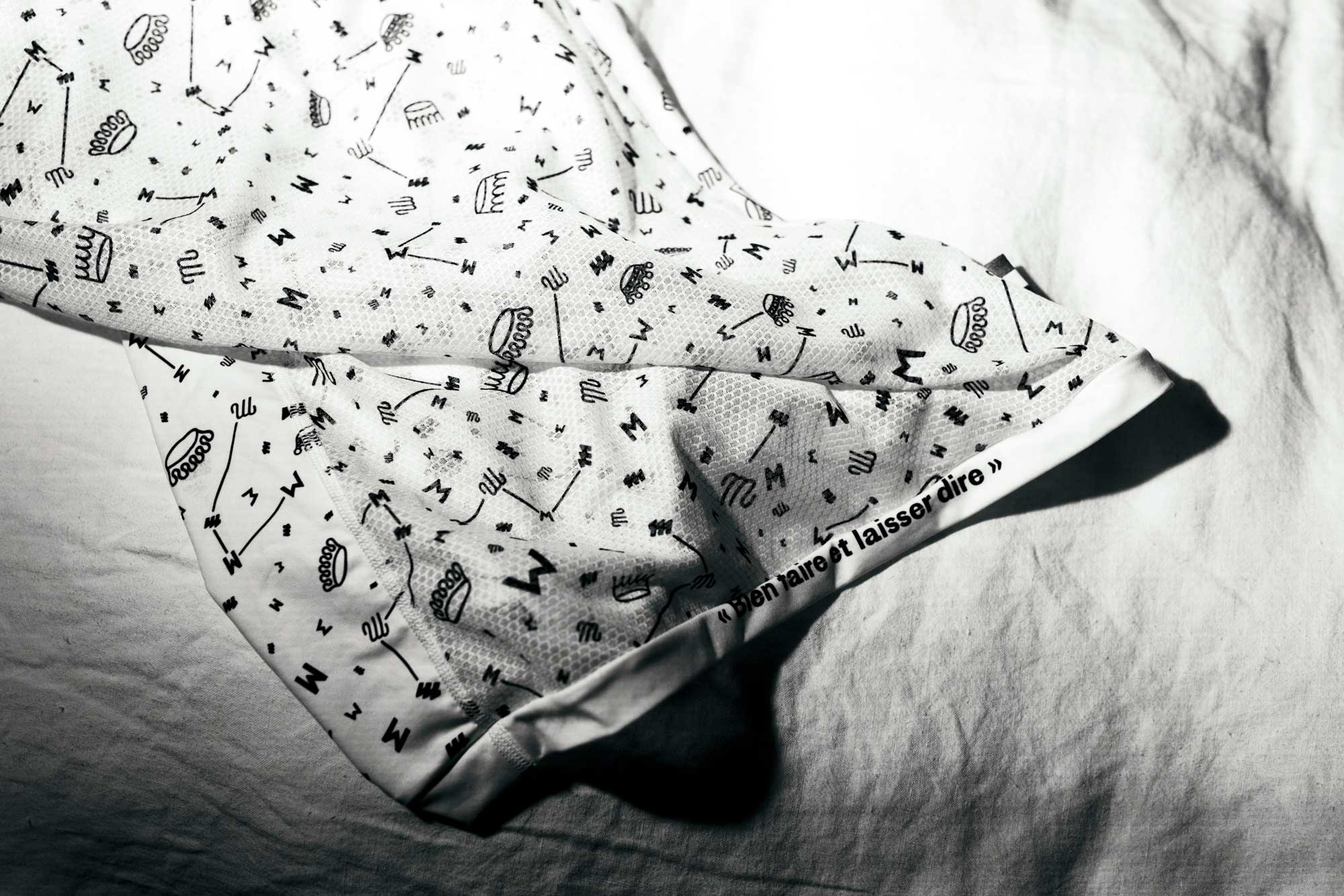 The visual identity of the Peloton base layer pays tribute to the brand’s heritage: the pattern brings together various logos that have appeared on Mercier bicycles over time. And to support you during your effort, the motto of Établissements Mercier is discreetly written inside: bien faire et laisser dire. Your turn, Ladies.
